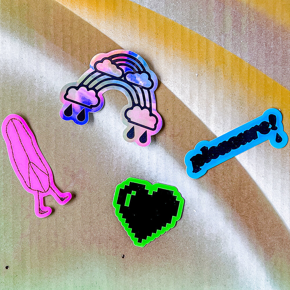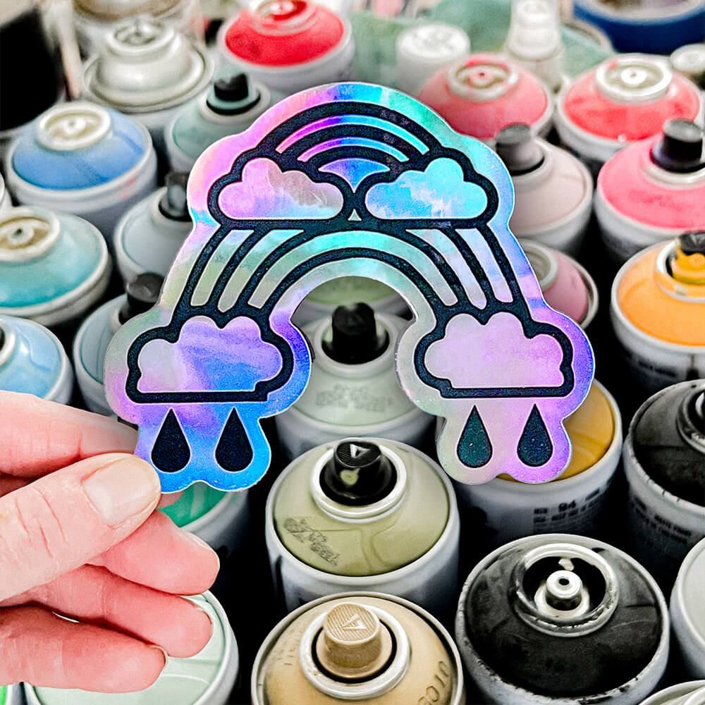 - 1 die-cut sticker (3.75 x 3.9 in.), digitally printed on rainbow holographic. Made with <3 in the USA. Great for phones and laptops.