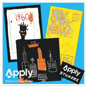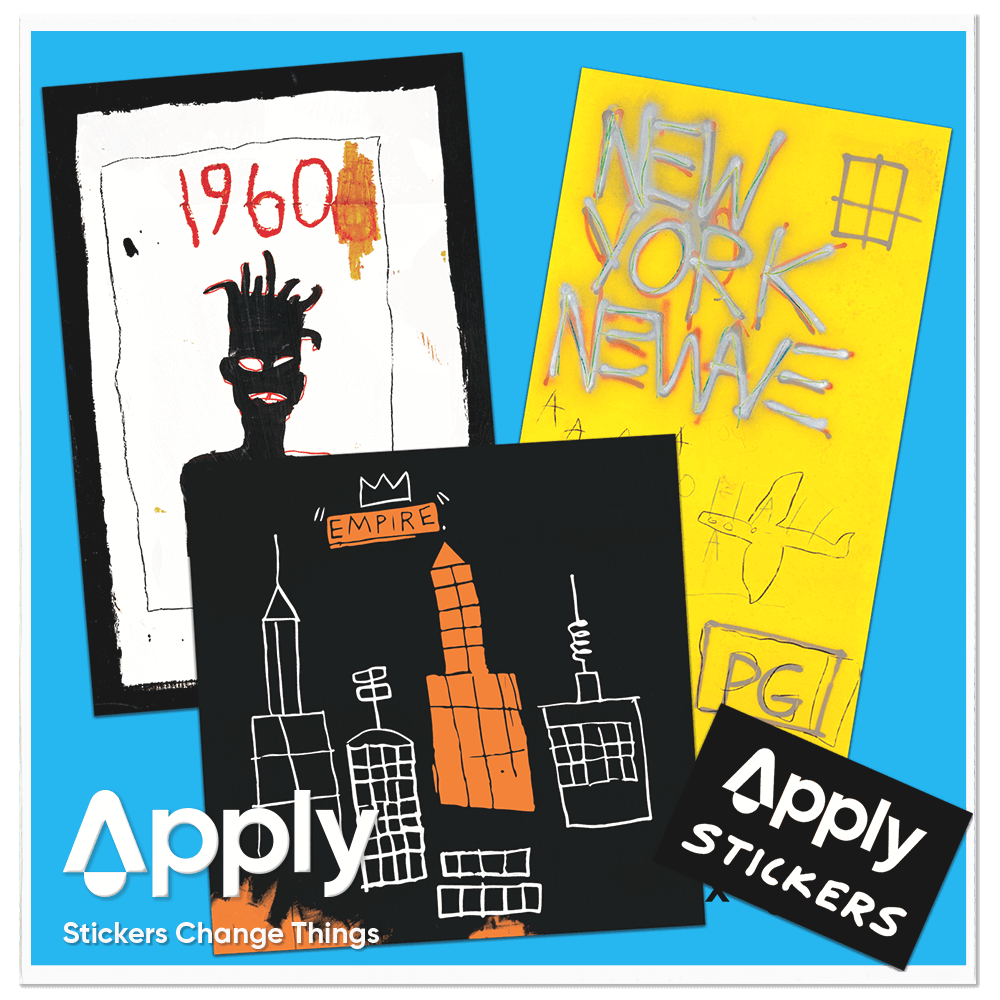 Three stickers that celebrate Basquiat's home, New York City. Find New York/New Wave, Mecca, and Untitled (Self-Portrait) printed on premium vinyl with back prints.