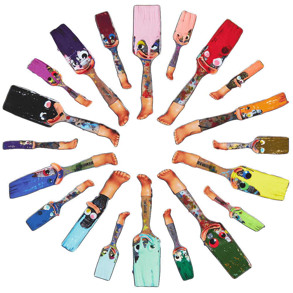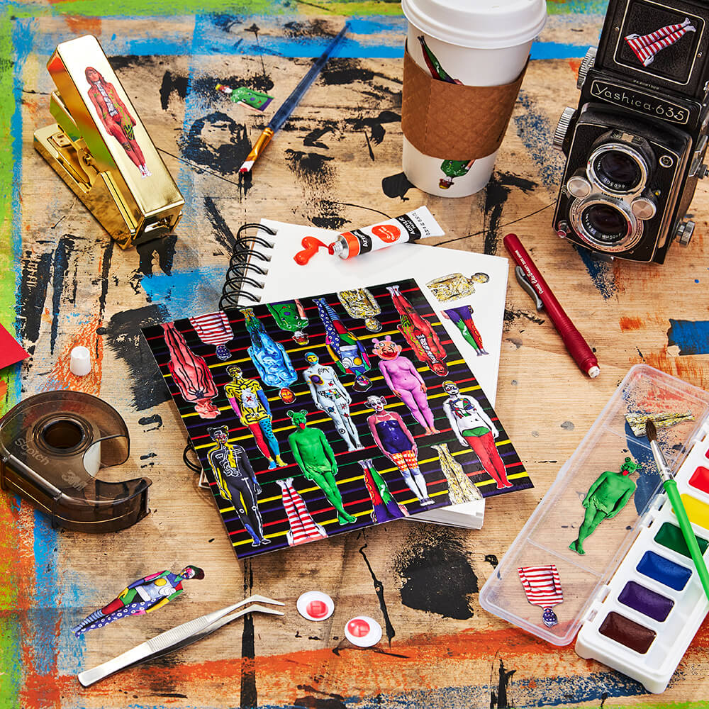 Sardines is a gallery packed with art you can peel apart. It features 14 of Olaf's Art Freaks, contemporary art icons, manifested through paint in their aesthetic on the human body. Find Kahlo, Basquiat, Haring and more squeezed into a 7”x7” kiss-cut sheet. Bring their creative energy into your world. Add ‘em to objects. Gift ‘em to friends. Either way, you can’t go wrong!
